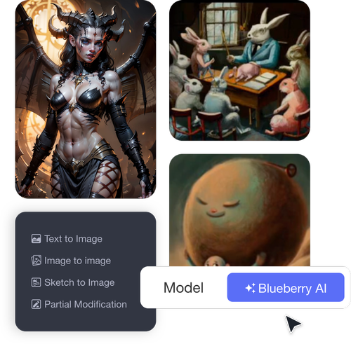 Use the powerful Blueberry AI (quality equivalent to DALL_E2, Midjourney) to quickly generate the content you need, and you can also choose from a variety of styles (Trippy, Cartoon, 3D, etc.) at the same time, as well as detailed parameter settings to set up the generated content, to fully ensure that the AI-generated content meets your needs.