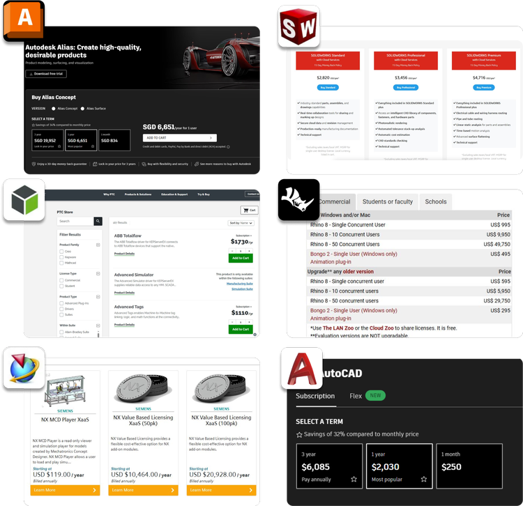 The high cost of software licenses creates a significant burden for teams, especially when non-design staff, like project managers, only need file viewing capabilities. For example, a team using software such as Alias, Solidworks, UG/NX, Proe, and Rhino can face substantial annual licensing fees.